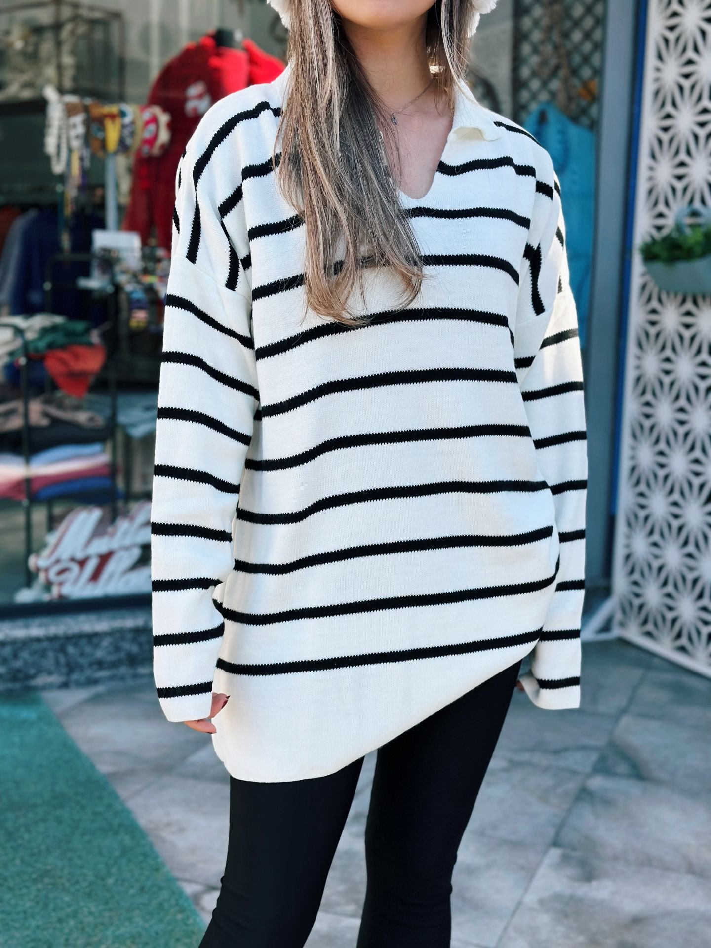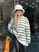 Çizgili Oversize Triko Kazak