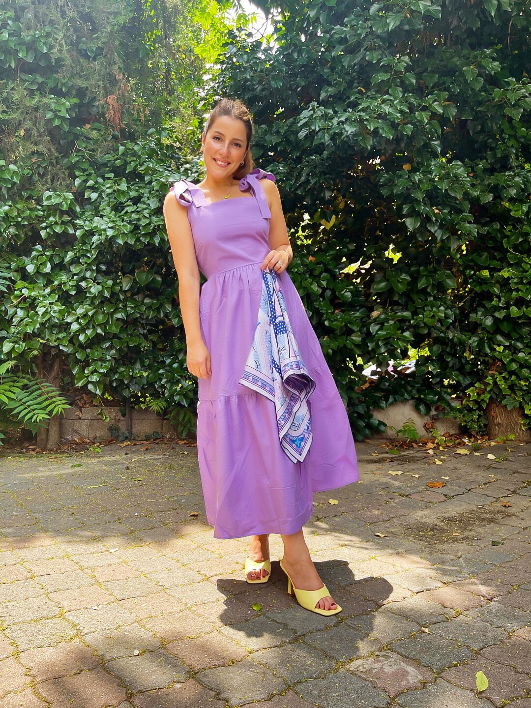 Poplin kumaş, omuzdan bağlama detay, sırt kısmı lastikli, midi boy elbise. Bedenlemesi tam kalıptır. İç göstermez.