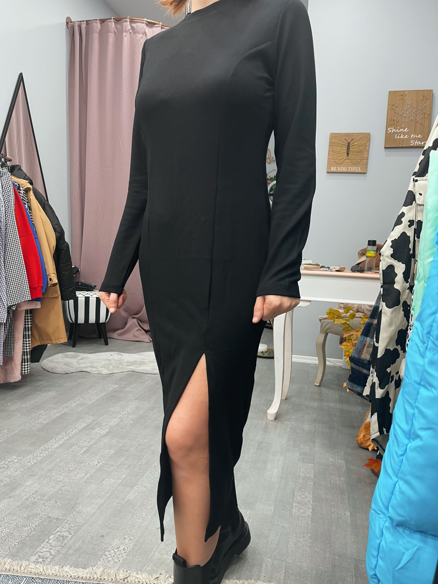 Pamuklu kumaştan üretilen, yırtmaç detaylı kalem elbisemiz, hem gündüz hem akşam kullanılabilecek bir üründür. Streç yapısı ile vücudu oldukça forma sokan elbisemiz, S M L şeklinde bedenleştirilmiştir.