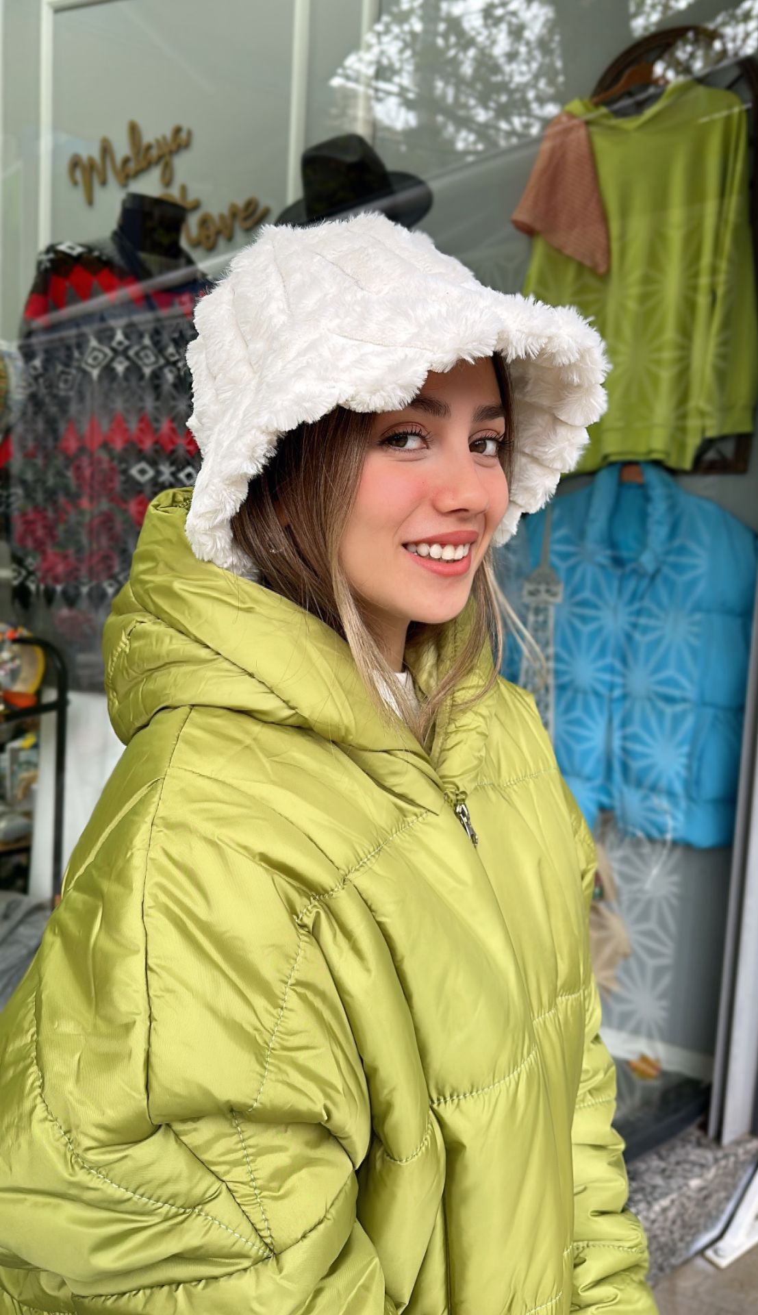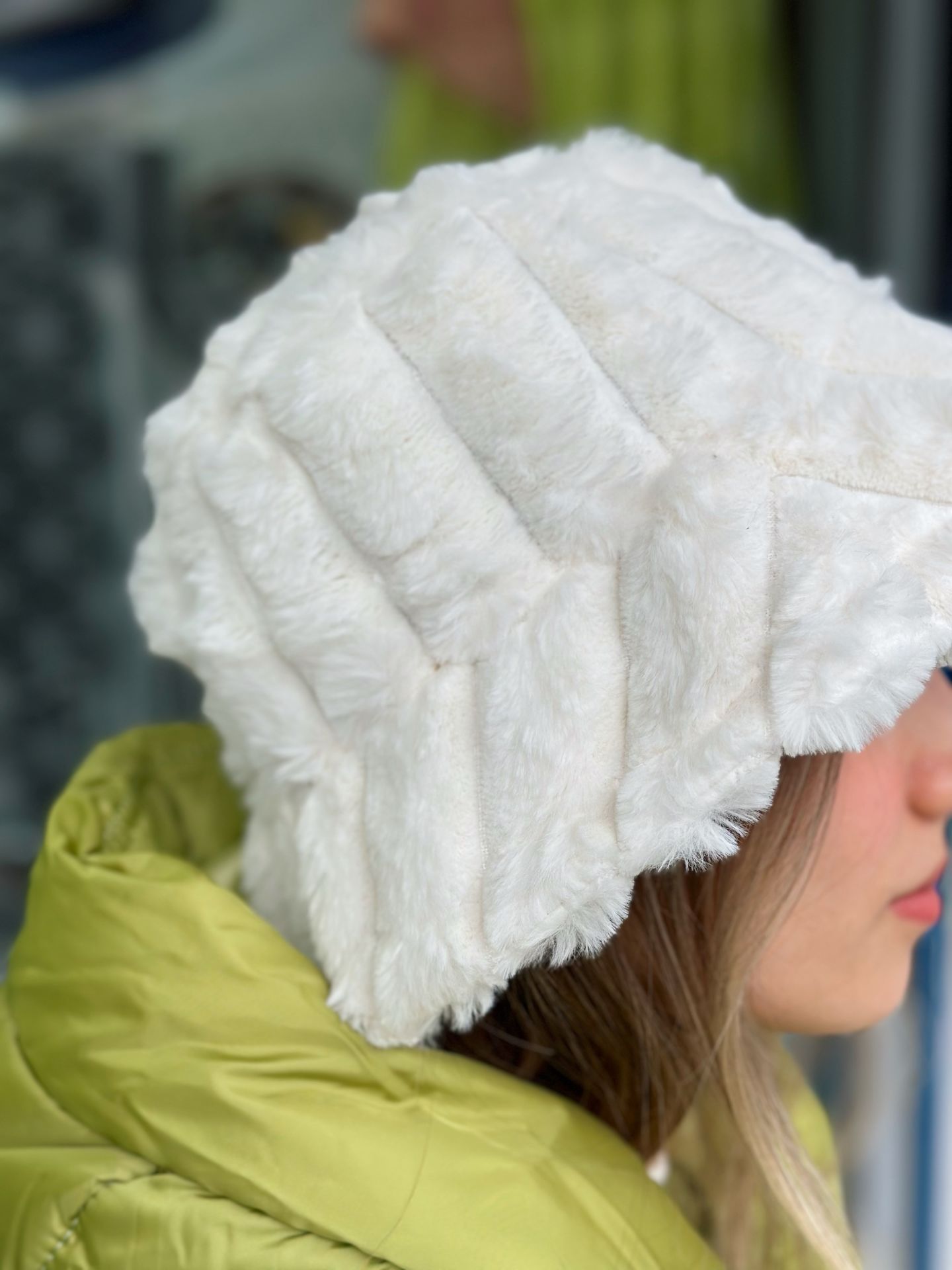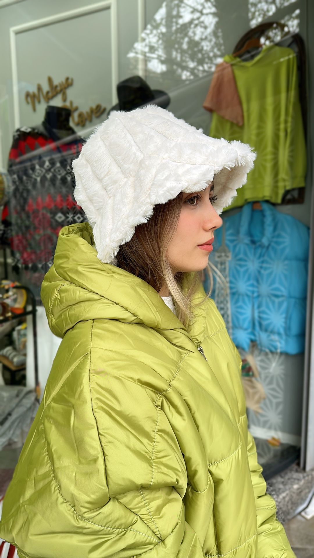 Yumuşacık, premium kalite peluş kumaş bucket şapka. İçten kendi ipleri mevcut. Baş ölçüsüne göre ayarlanabilir.