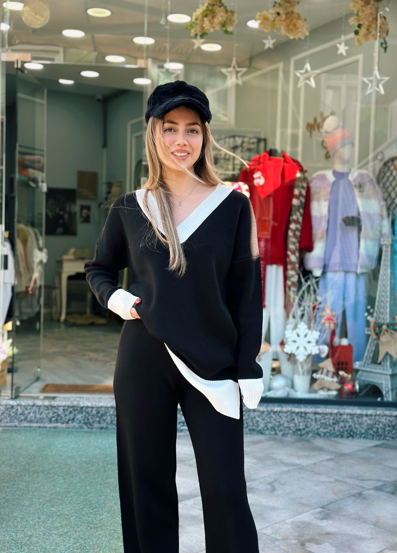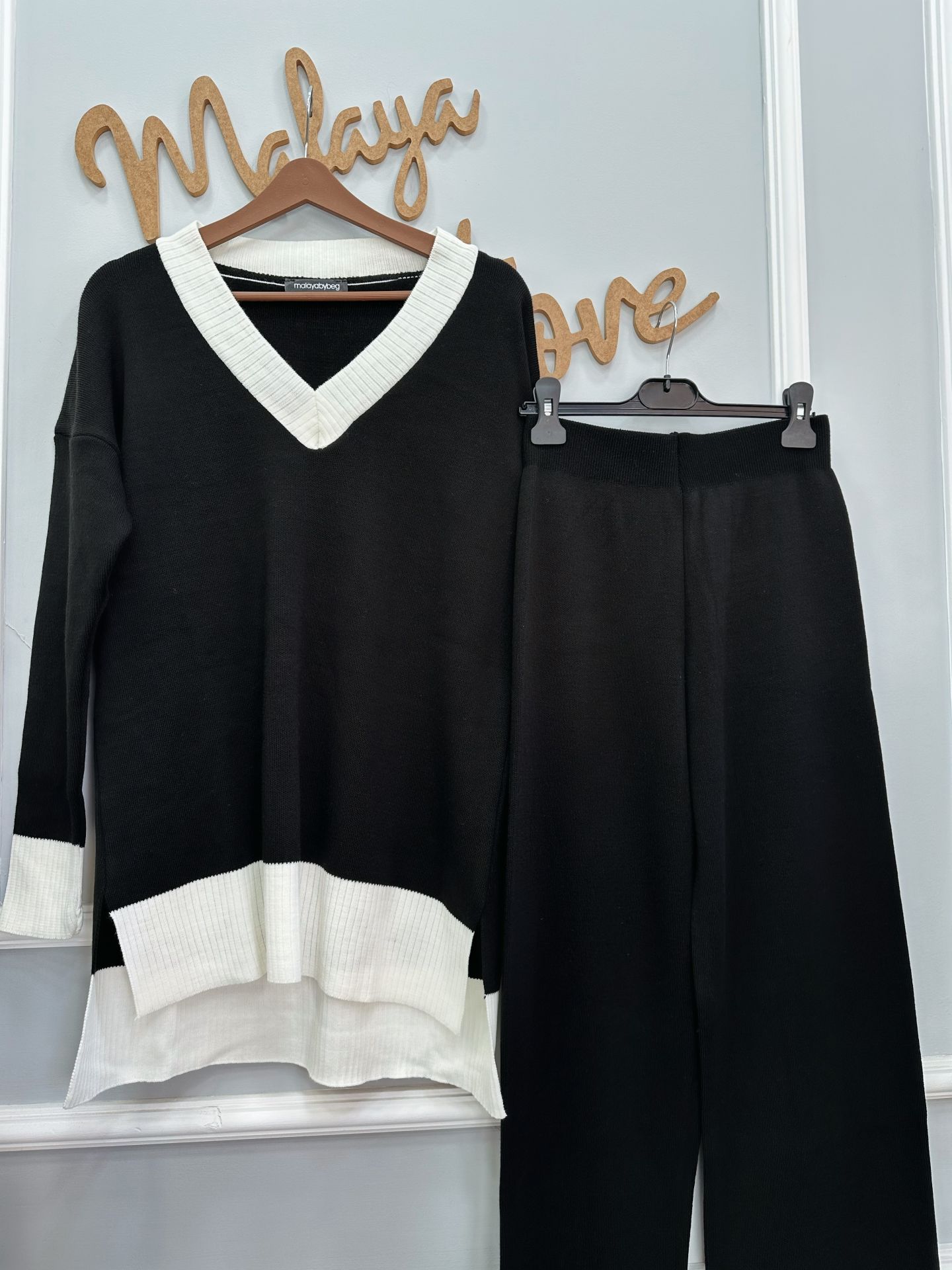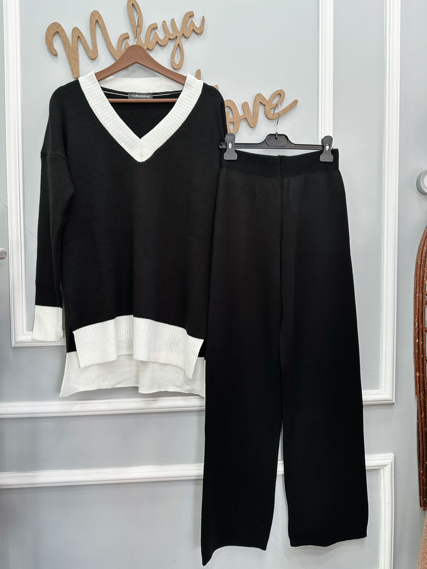 Siyah Beyaz İkili Triko Takım