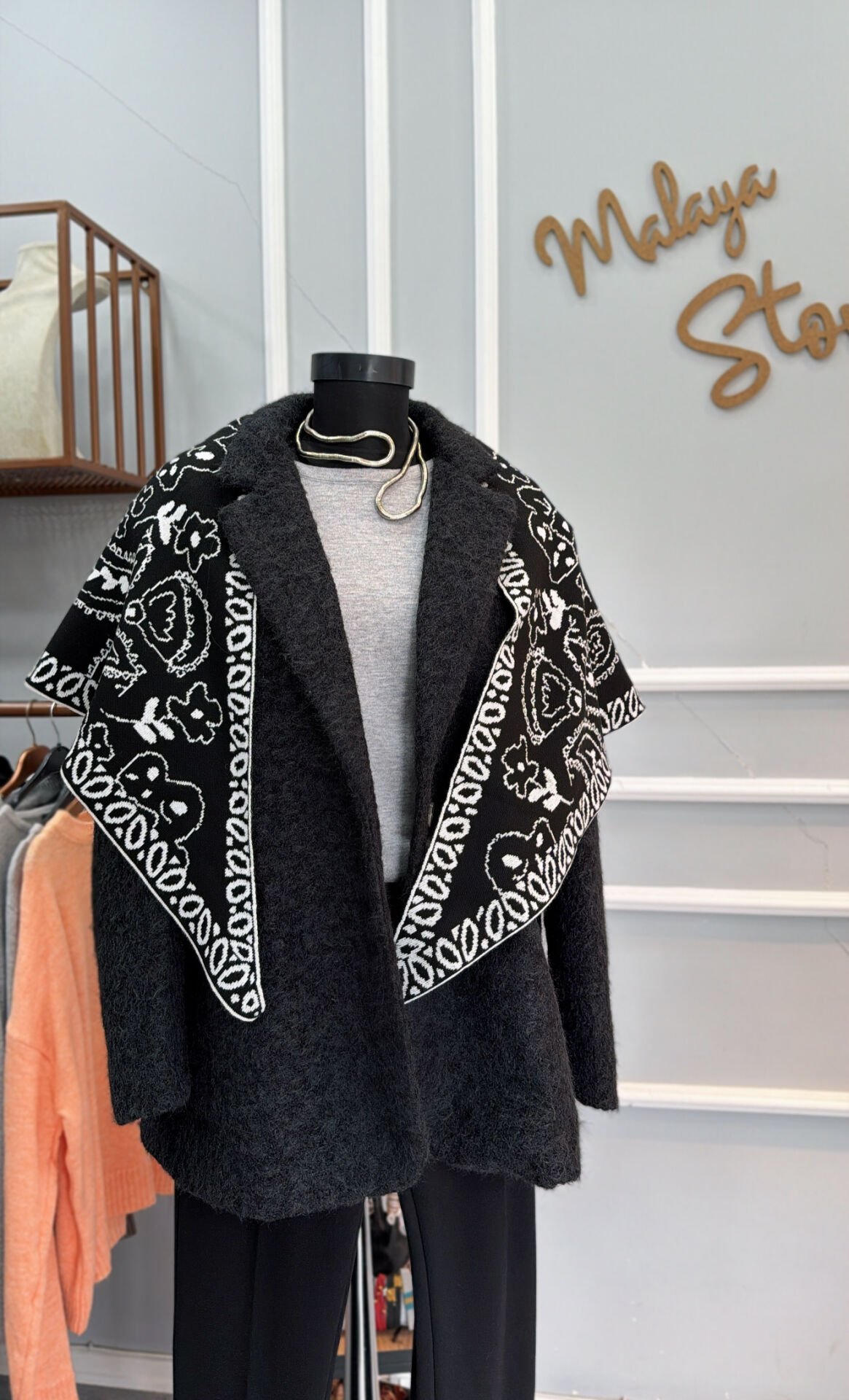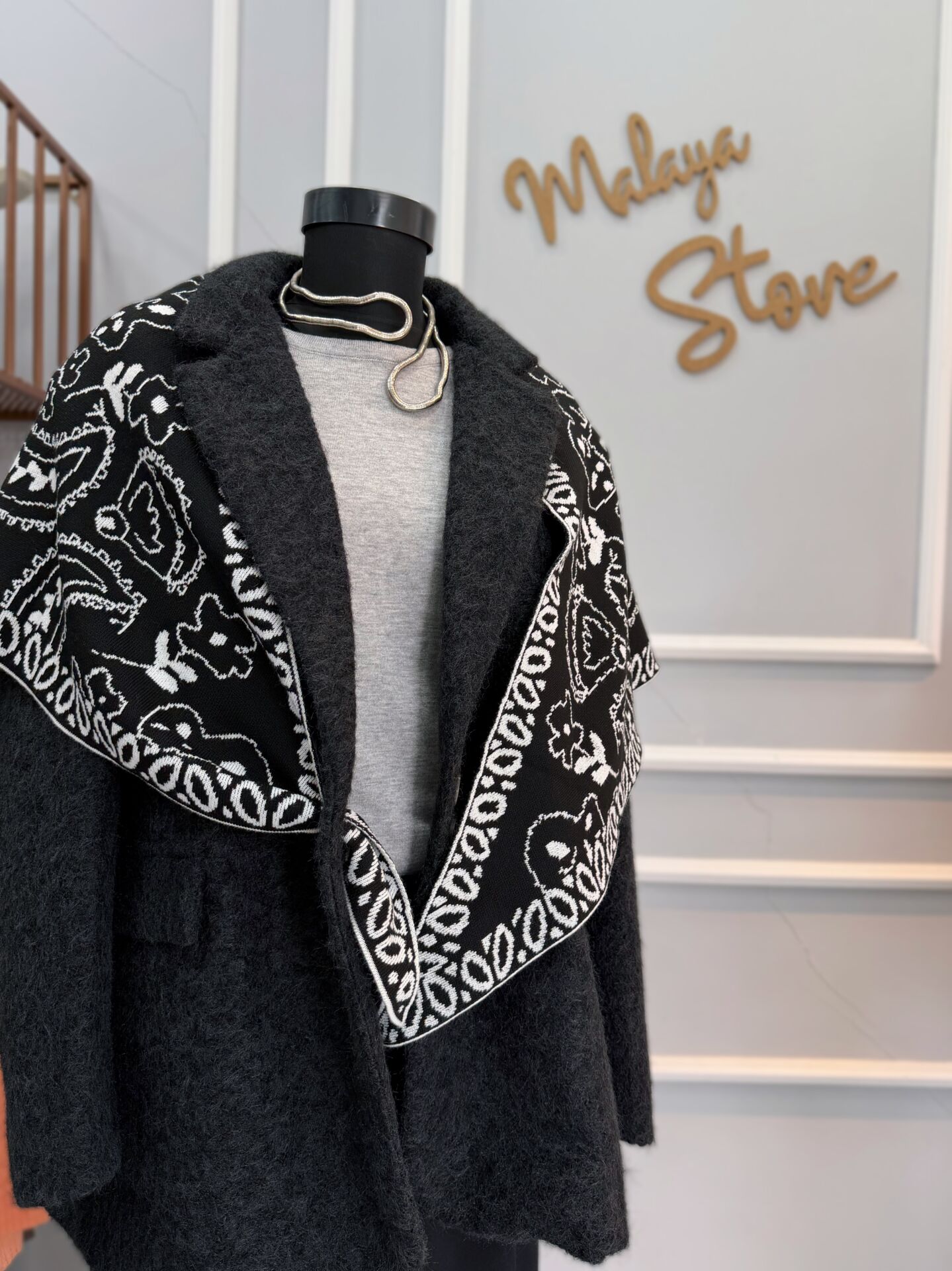 Yumuşacık ve sıcacık V formlu triko omuz şalı. Çift yönlüdür.