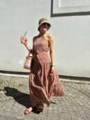 Yumuşacık, nefes alan kumaş viskon.. Maksi boy, boyundan bağlama, tam kalıp, tiril tiril, uçuş uçuş elbisemiz S M L bedenlidir. A formunda gelmektedir. Belden kendi kuşağı mevcuttur.