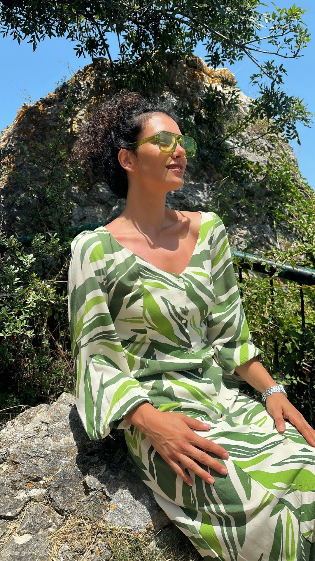 Kolları hafif balon model, bilekten lastikli, midi boydan biraz daha uzun, incecik, tiril tiril viskon elbise. Tam kalıptır.